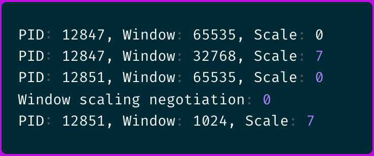 The eBPF traces revealed that some connections were negotiating window scaling correctly while others weren't.