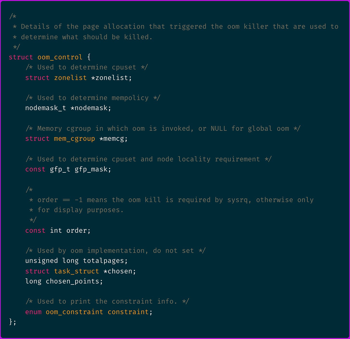 But the kernel is not able to broadcast a request for volunteers to be killed, so the OOM killer has to apply a set of heuristics in an attempt to find the victim that will free the most memory while minimizing user anguish.