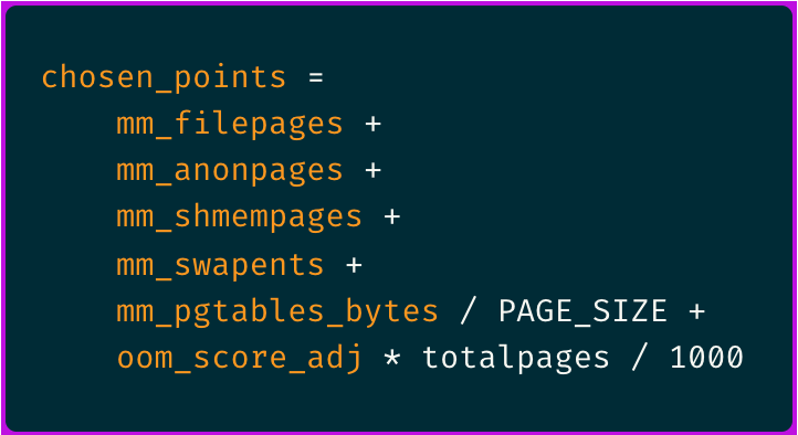 The formula for the OOM “badness” score calculation ends up looking something like this: