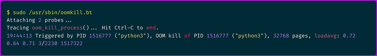 Let's make sense of it, starting with line kprobe:oom_kill_process