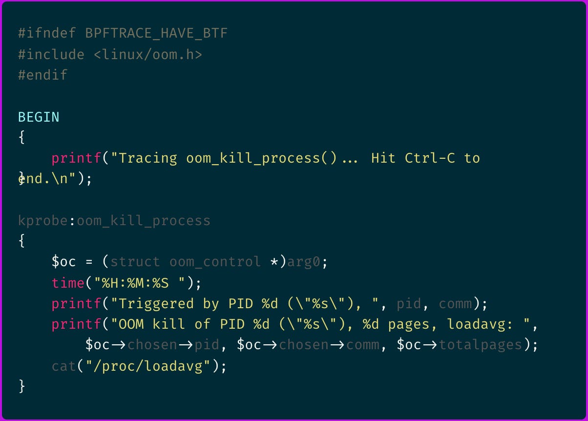 There are several ways to write an eBPF program that hooks into the oom_kill